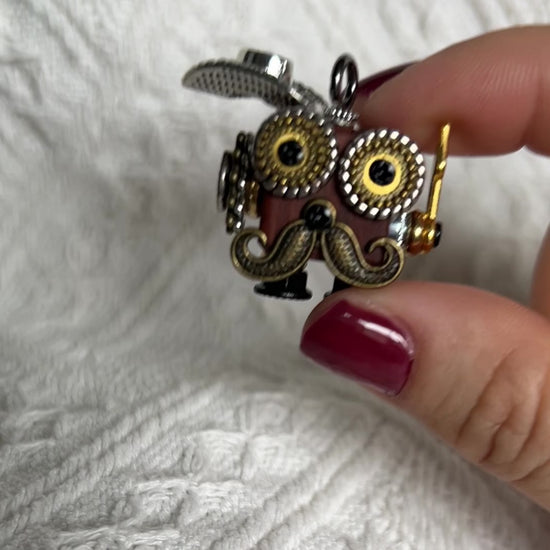 Handmade Mini Robot Pendant/Charms - Moustache Steampunk Design | Necklace, Keychain, Creative Gift